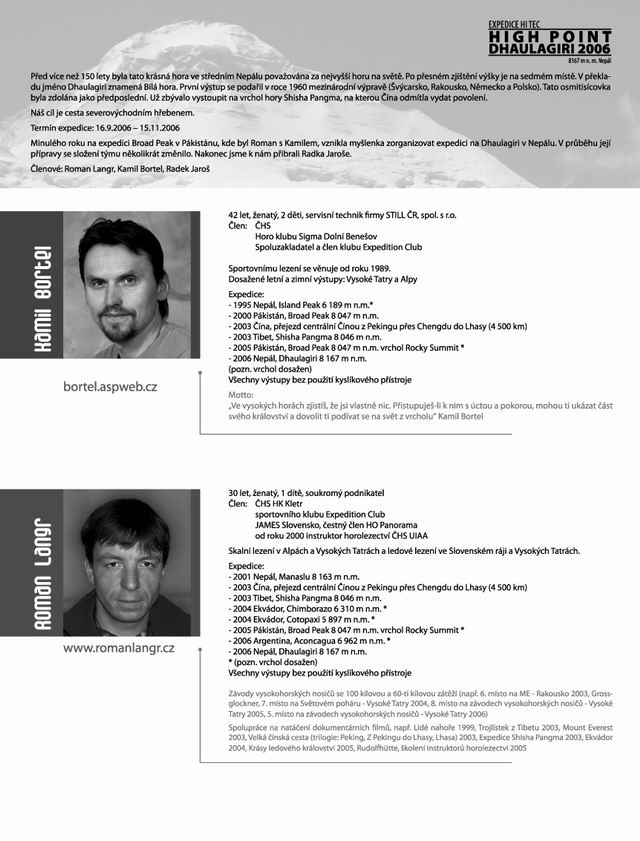 Menu Úvod Expedice Lezení Závody nosičů Přednášky a výstavy Fotogalerie Filmy E-obchod Výškové práce Odkazy Kontakt