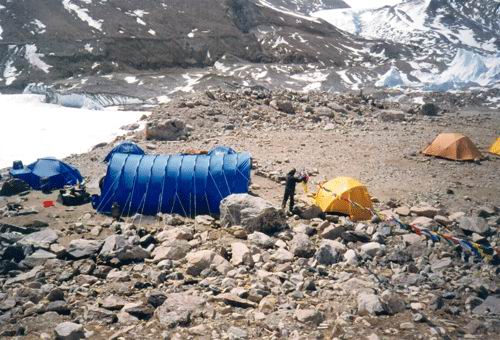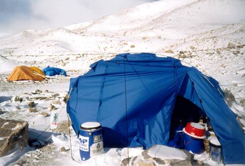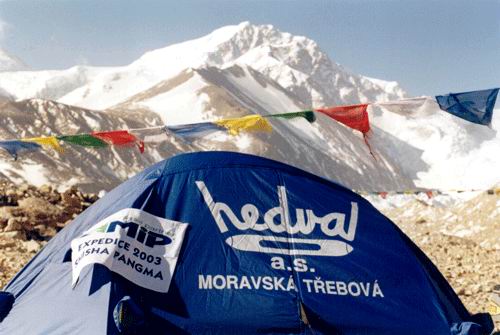 2003 Shisha Pangma 8.046 m n. m., Tibet; součást projektu Tibet 2003 Lhasa, palác Potala |  Orba s jaky |  Základní tábor (B.C.) |  B.C. |  Kamil a Pavel v stane v B.C. |  Pohled na náš B.C. Velký modrý stan je jídelní. Je ušitý z látky od firmy HEDVA, a.s.. |  Pohled na náš B.C. |  Pohled na náš B.C. |  B.C. |  Joska a Pavel v jídelním stanu |  Pohled na náš B.C. |  Pohled na náš B.C. |